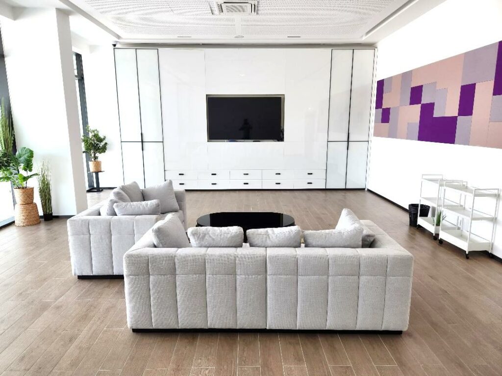 Adaptable à volonté, canapés cosy, fauteuils en cuir et tables de conseil d’administration sont prêts à vous accueillir en toute sérénité